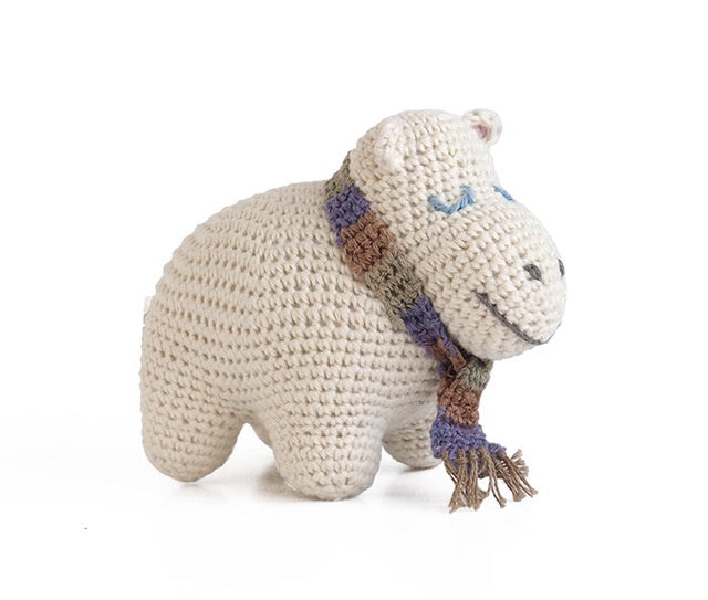 This organic cotton sleepy baby hippo with striped scarf is perfect for little ones to snuggle