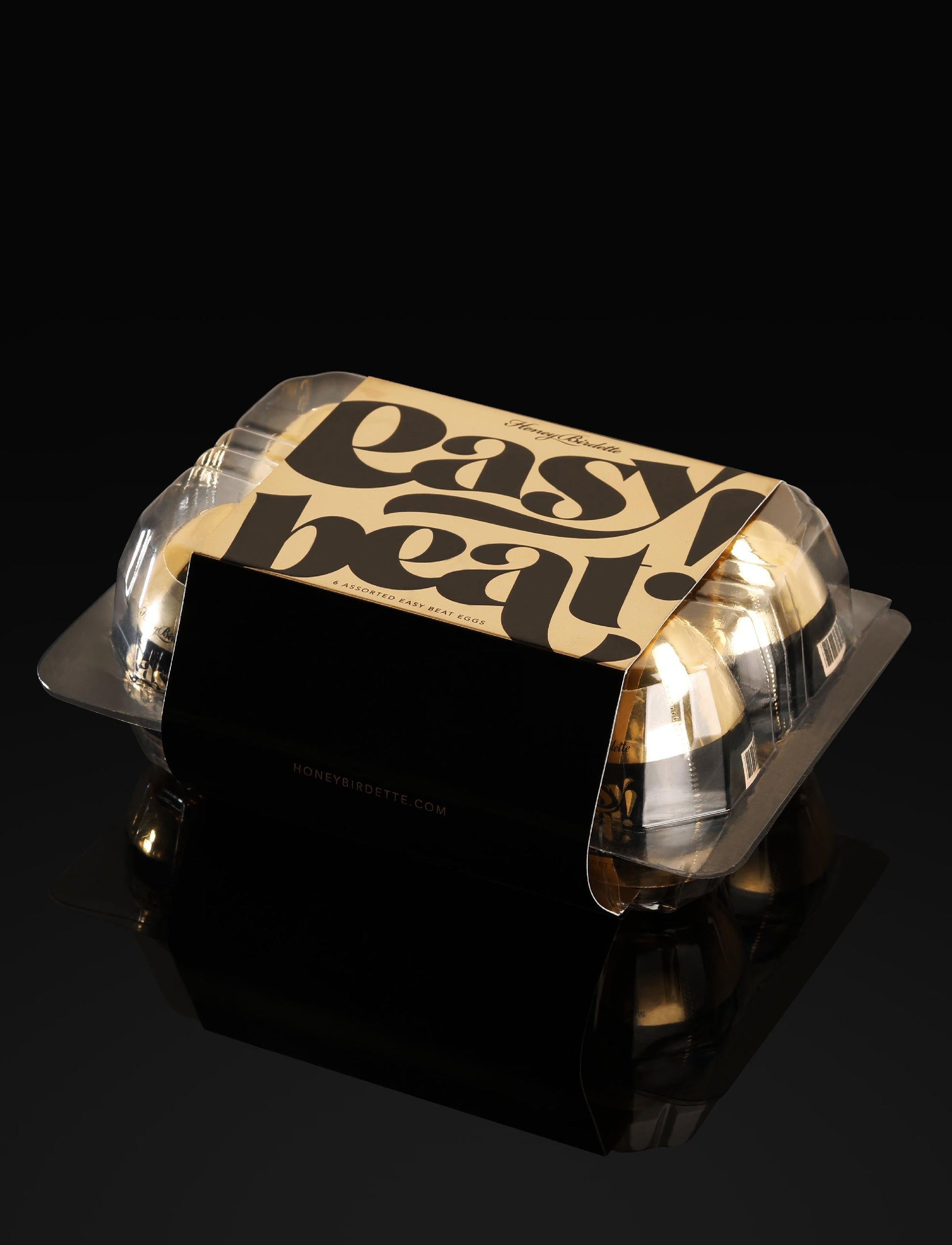 Introducing the Easy Beat Egg, an egg-citing treat for him. What is it, you ask? Inside each egg, there’s a silicone sleeve that stretches over the shaft. Designed to feel even better than oral play, the sleeve glides up and down within the palm of your hand. Each type of egg has a different texture and pattern that will create various sensations. Pop and play!