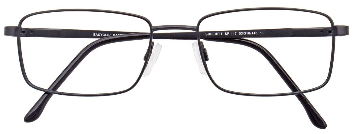 The?Easyclip SF117 by Aspex Eyewear?has a sleek, rectangular profile with meticulously crafted temples to match.? Titanium material creates a thin, yet sophisticated profile while more robust temples add an essence of vigor.? Equipped with magnetic clip-on sunglasses, this frame is convenience and UV protection in one.