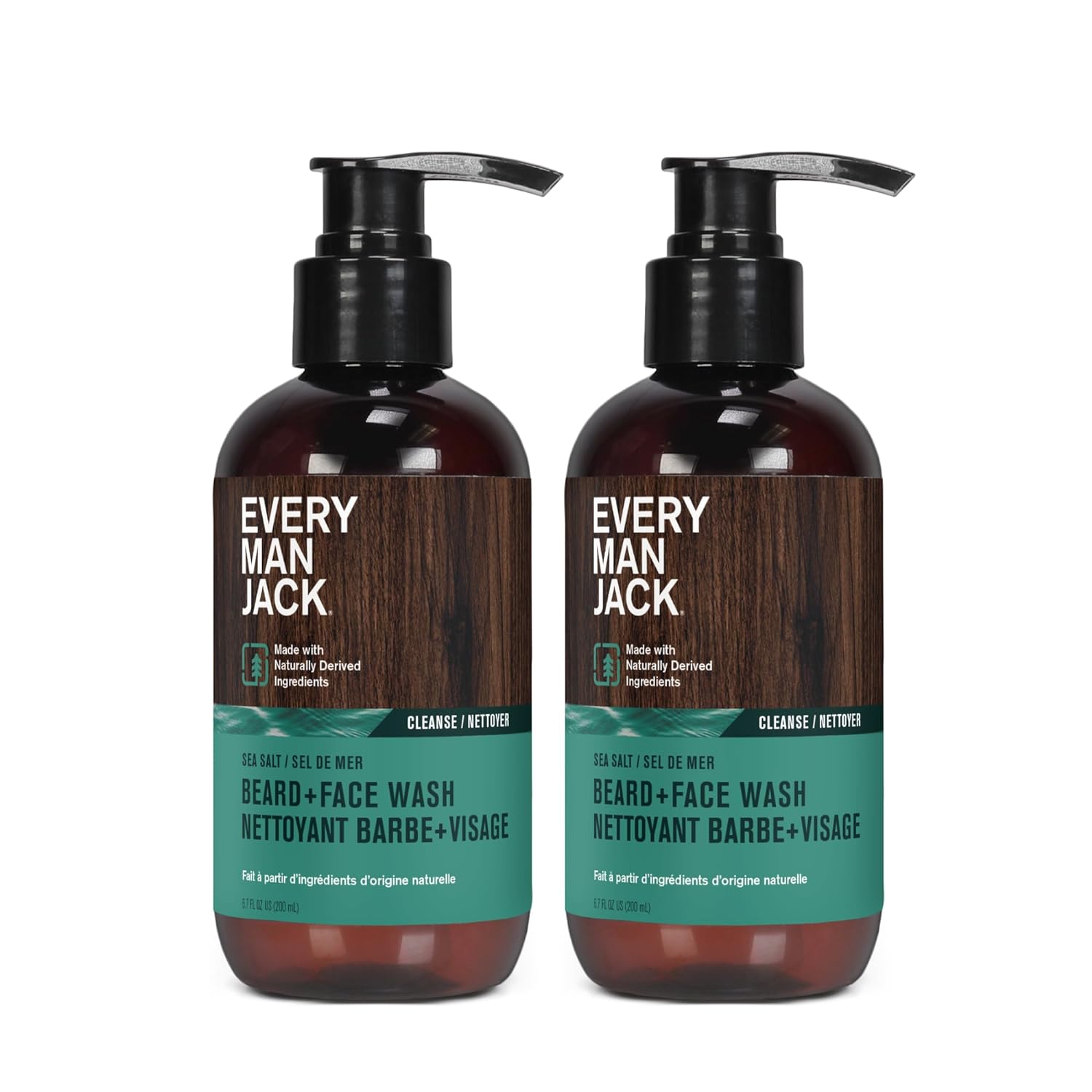 Every Man Jack Beard + Face Wash - Subtle Sea Salt Fragrance - Deep Cleans, Conditions, and Softens Your Beard and Skin Underneath - Naturally Derived with Coconut Oil, and Glycerin - 6.7-ounce - 2pk