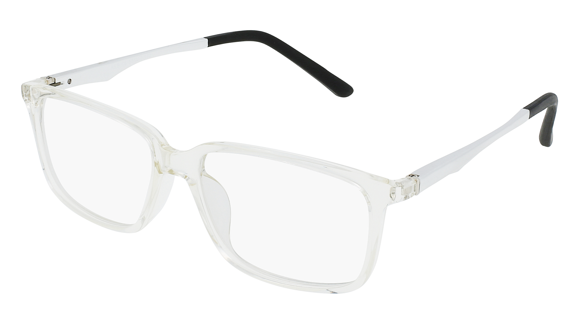 - A modern frame with ever-popular rectangular lenses in a crystal colorway with stainless steel temples and coated black temple tips?