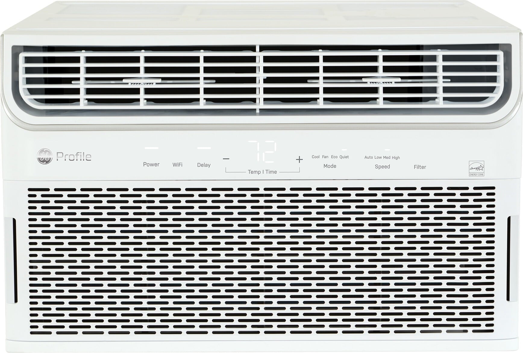 GE 12000 BTU 110V Smart Window-Mounted Air Conditioner with Wi-FiINDTRY'S MOST EFFICIENT BTU WINDOW AC - A 15.4 CEER produces 44% more energy efficiency and makes this unit the most efficient 12K window AC in the .INVERTER TECHNOLOGY - Adaptive air conditioner inverter technology operates at smooth varying levels reducing noise and maxmizing energy efficiency.ULTRA QUIET - This quiet air conditioner reaches sounds as low as 40 dB underlining GE Profile's rating as the Quietest Window AC Brand in the .SMART EASY OPERATION: Integration with the SmartHQ app allows you to monitor schedule and control your smart AC unit from anywhere while compatibility with your favorite devices like Alexa and Google Assistant makes everyday use easier and more versatile than ever or you can use the included remote controlMAXIMUM COMFORT FOR LARGE ROOMS: Three fan speeds and four cooling modes provide total flexibility with optimal home comfort and air conditioner efficiency or set to Eco Mode which automatically turns the fan and compressor saving you money on utilities.