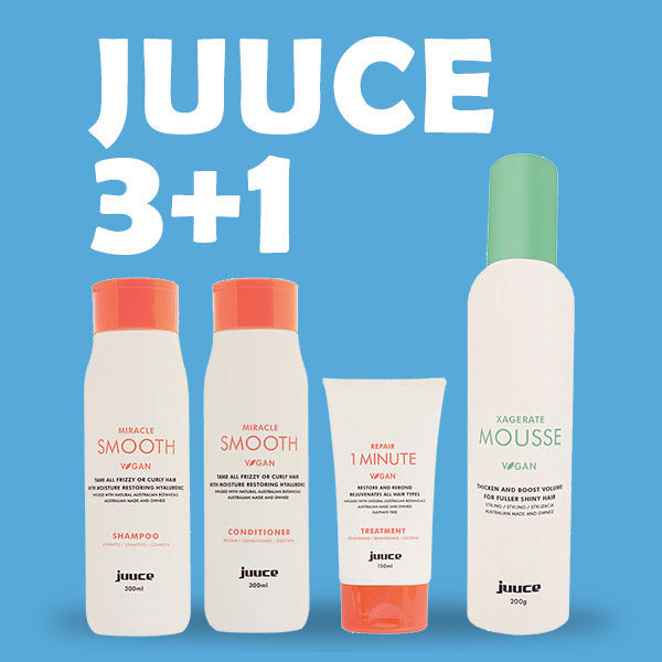 Build your own Juuce 3 + 1 bundle. Choose a Juuce Shampoo, Conditioner and Treatment and get a $30.95 Juuce Styling product for free!