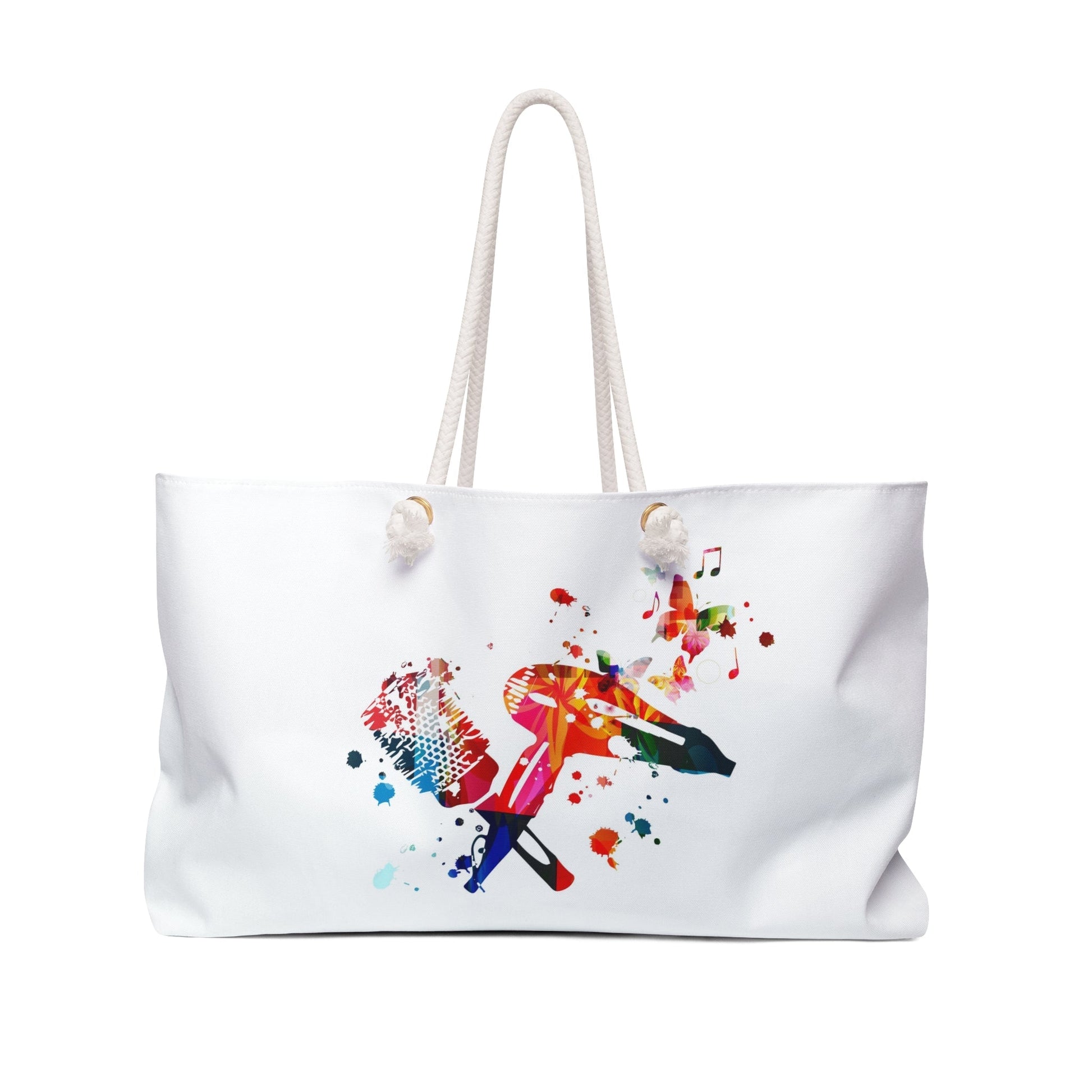 The wide-mouthed, durable bag holds a generous amount of personal items and is easily held by its thick rope handles.