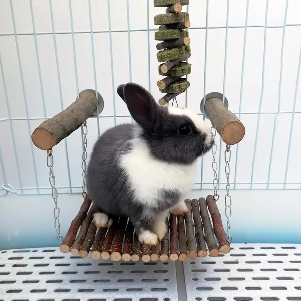 Hamster Rabbit Mouse Chinchilla Wooden Hanging Pet Hammock Swing Toys With Bell Cage Accessories Rat Cat Small Pet Product