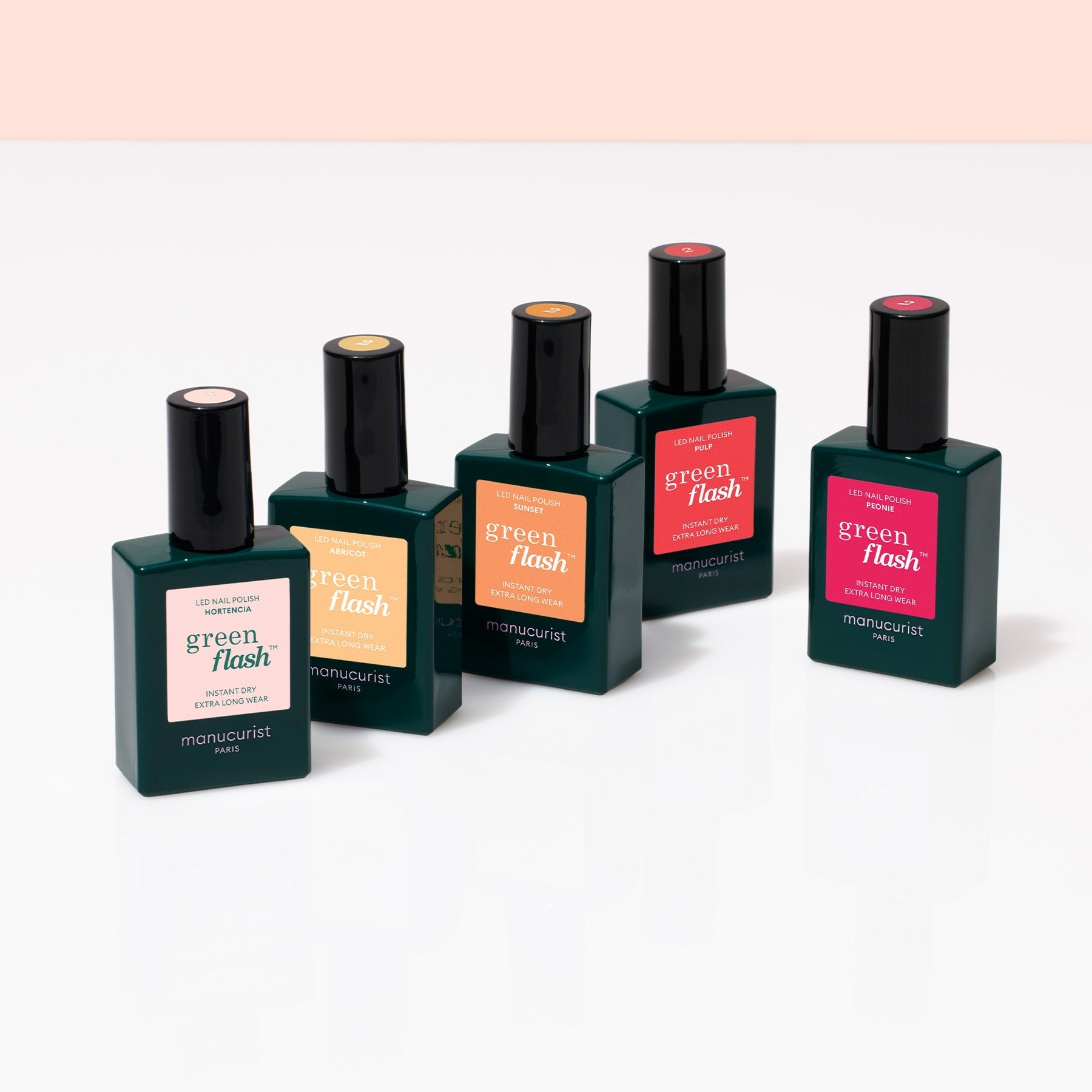 A rainbow of 5 limited-edition Green Flash??LED?gel polishes for spring/summer 2024! A tropical blend of colors inspired by Hawaiian Hibiscus blooms. A famous flower, highly regarded in Hawaiian culture, and symbolic of beauty, love, celebration and connection to nature.