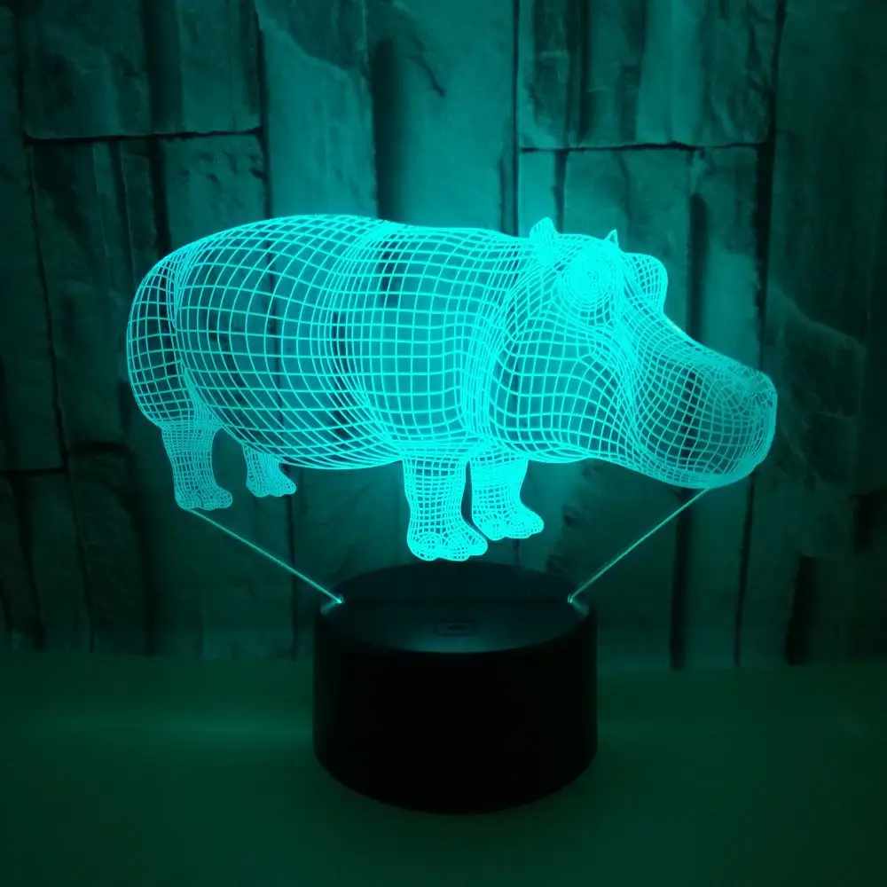 Hippo 3D Night Light Lamp Colorful USB 3d Visual Bedroom
