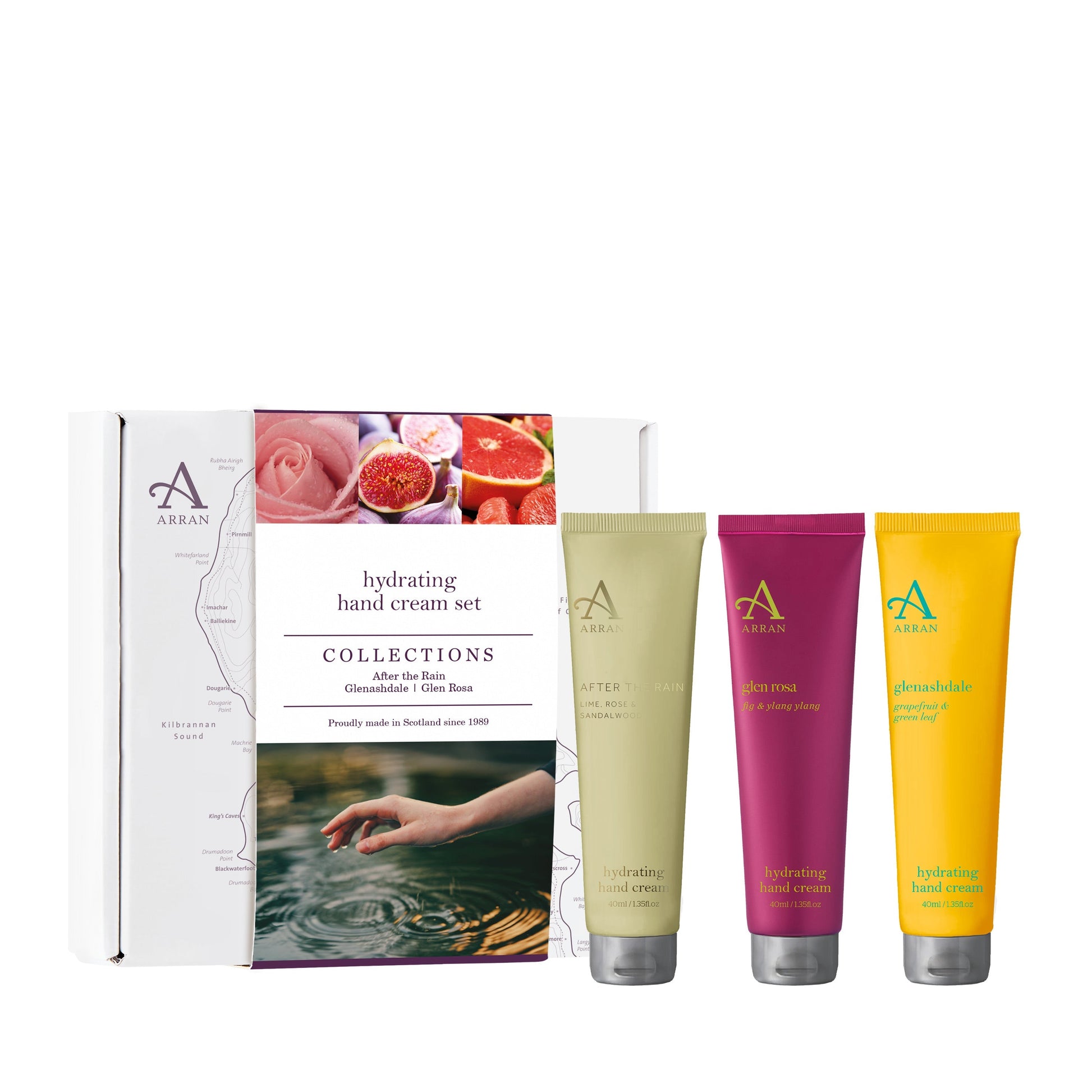 Everything you need for nourished, hydrated hands �C all in one collection. Each containing three travel-size hand creams in our most popular fragrances, After the Rain, Glenashdale & Glen Rosa. Treat yourself or a loved one to the lightweight yet deeply moisturising properties of our Hydrating Hand Cream Gift Set.