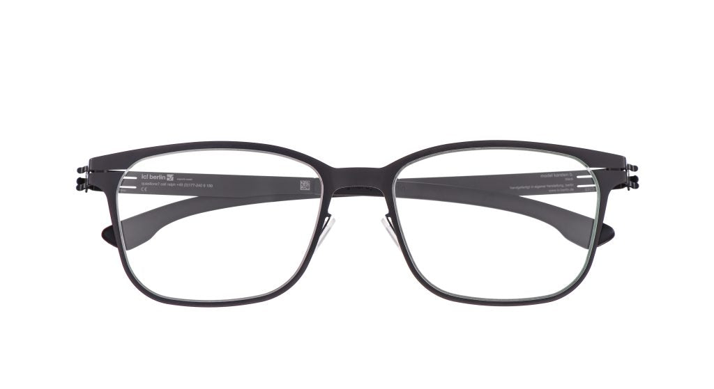 This understated and minimalist design from IC! Berlin, Karsten B, a square-shaped frame is made of surgical stainless steel is 100% designed and manufactured in Berlin, Germany.? The focus and details are subtle, incorporating the brand's signature no screw hinge.? This frame expresses inner strength, power and calm.? It is for the independent minded individuals who think forward and move ahead.? Lightweight, corrosion resistant, and unbreakable.