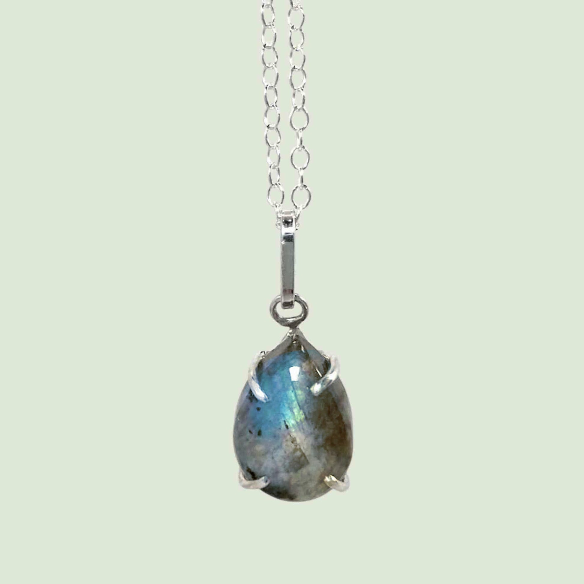 Labradorite Teardrop Pendant Sterling Silver Necklace