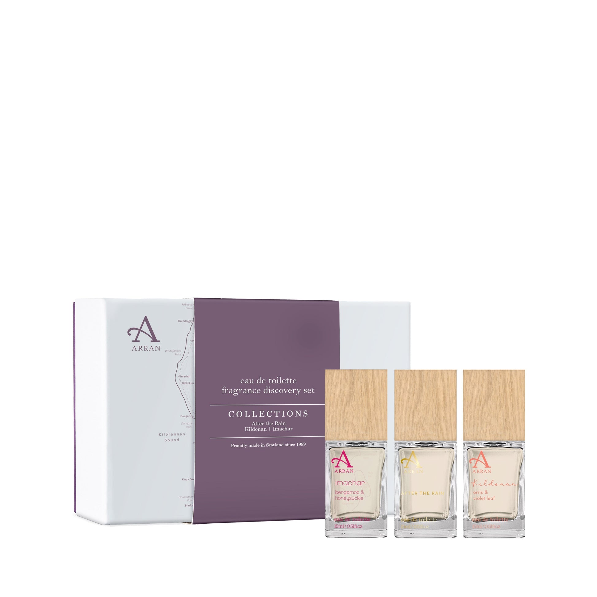This Mixed Eau de Toilette Discovery Set is the perfect gift to treat yourself or a loved one. With three fragrances inspired by our unspoiled island home. Encapsulating the tranquillity of Kildonan basking in the late, summer sun, the calm, peaceful beauty of Imachar on the west of Arran and of course, our signature fragrance, After the Rain, transporting you to a summer garden on the Isle of Arran following a rain shower. An indulgent,?fragrant treat, this discovery set will transport your senses to a place of tranquil bliss.?