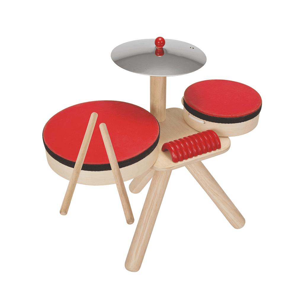 Is your little one ready to take center stage? This Musical Band Includes 2 differently-sized drums, a pair of drumsticks, a cymbal and a guiro. The set stands over 13 inches tall and is perfect for an active toddler.Additionally, the drumheads are made from fabric coated with natural rubber, making for a gentle yet realistic musical experience.