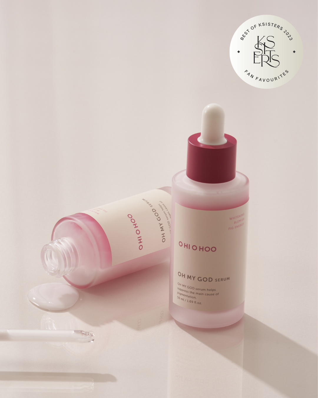 OHIOHOO Oh My God Serum suppresses melanin movement, which is the main cause of pigmentation�? It contains Fig, Ficin, Vitamin C, Polyphenol, Alpha-Bisabolol, Tranexamic Acid & Milk Protein to intensely brighten dull skin & hydrate dry skin.��