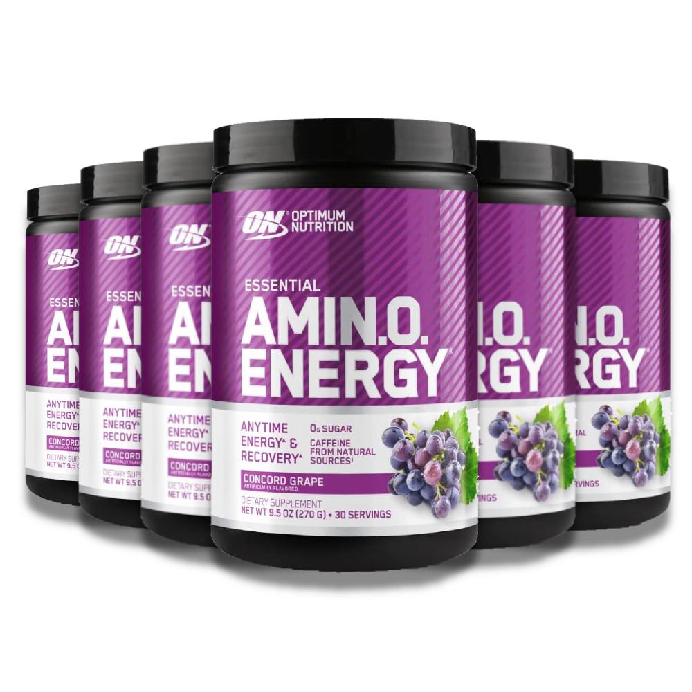 Optimum Nutrition - Amino Energy, Pre Workout, Energy Powder, Concord Grape - 9.5 Oz - 6 Pack