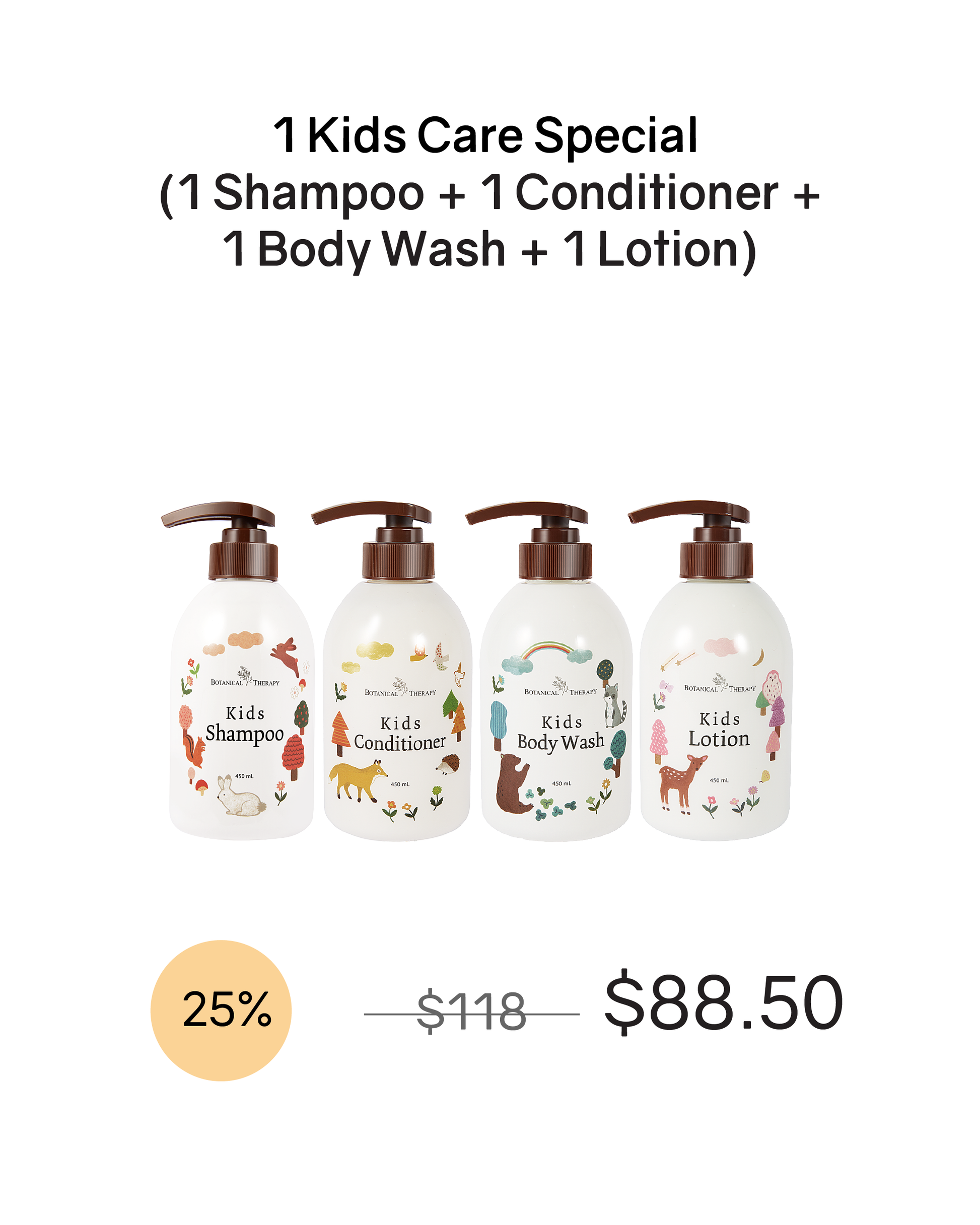 A Korean mom's favourite, consisting of Kids Shampoo, Kids Conditioner, Kids Body Wash and Kids Lotion. Strengthen your child's skin barrier with the Kids Care Special, carefully curated for your little ones!
