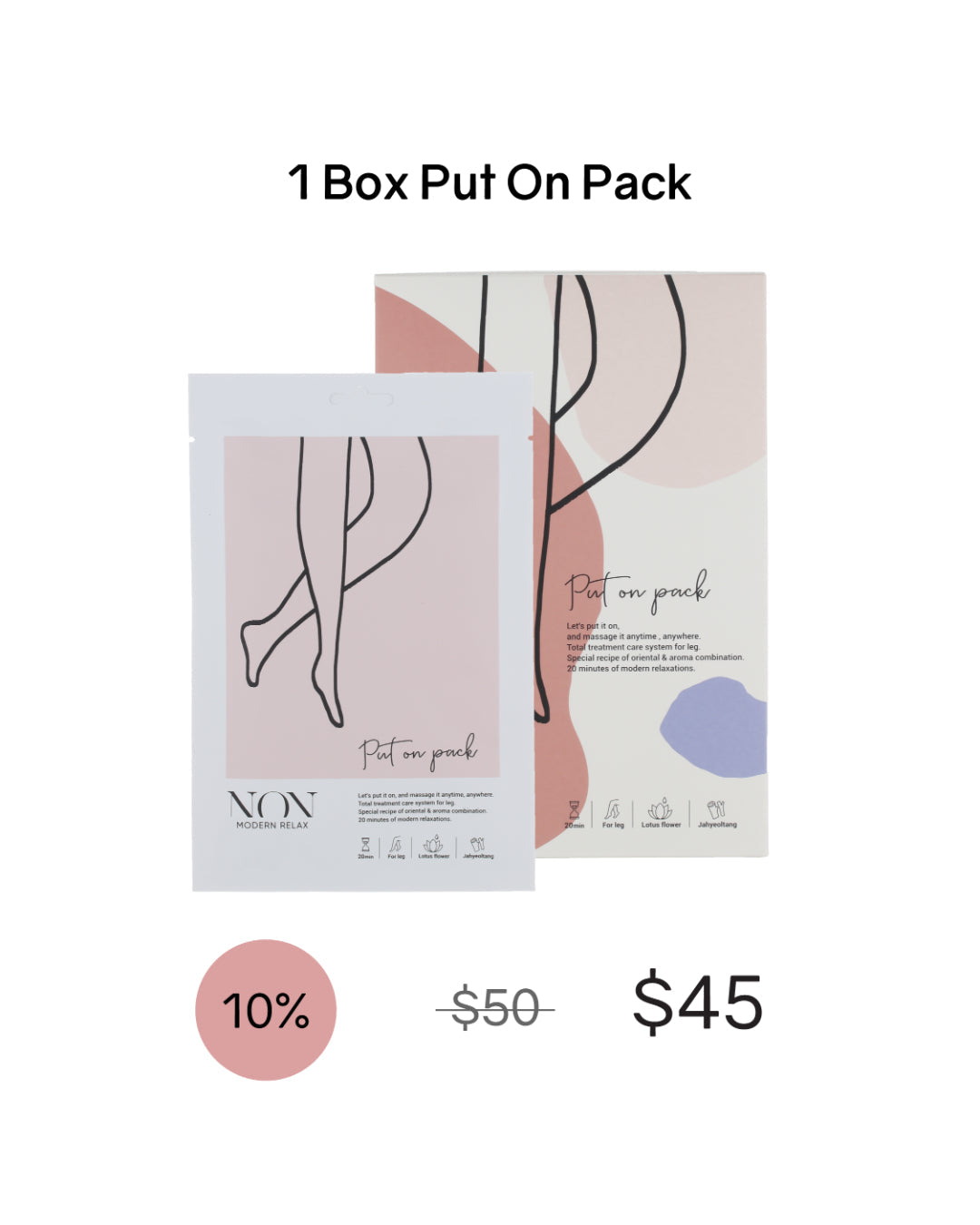 An oriental and aromatic combination,�The Nov's Put On Pack�is a total treatment care system that relaxes,�soothes, and relieves tiredness in�the feet and legs. It also contains 10 herbal ingredients which can encourage blood flow and provides moisture!