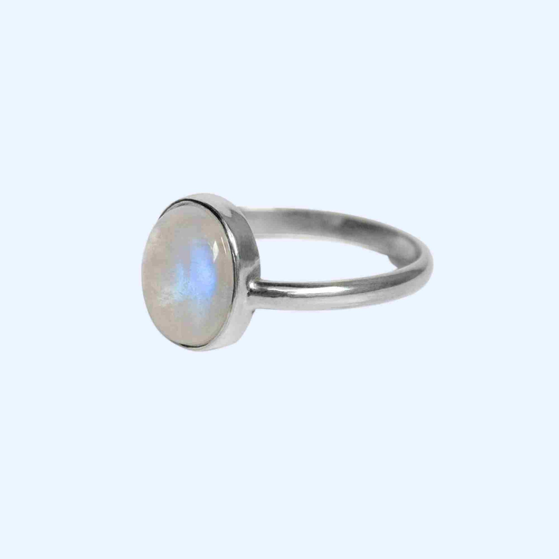 Rainbow Moonstone Open Bezel Sterling Silver Ring