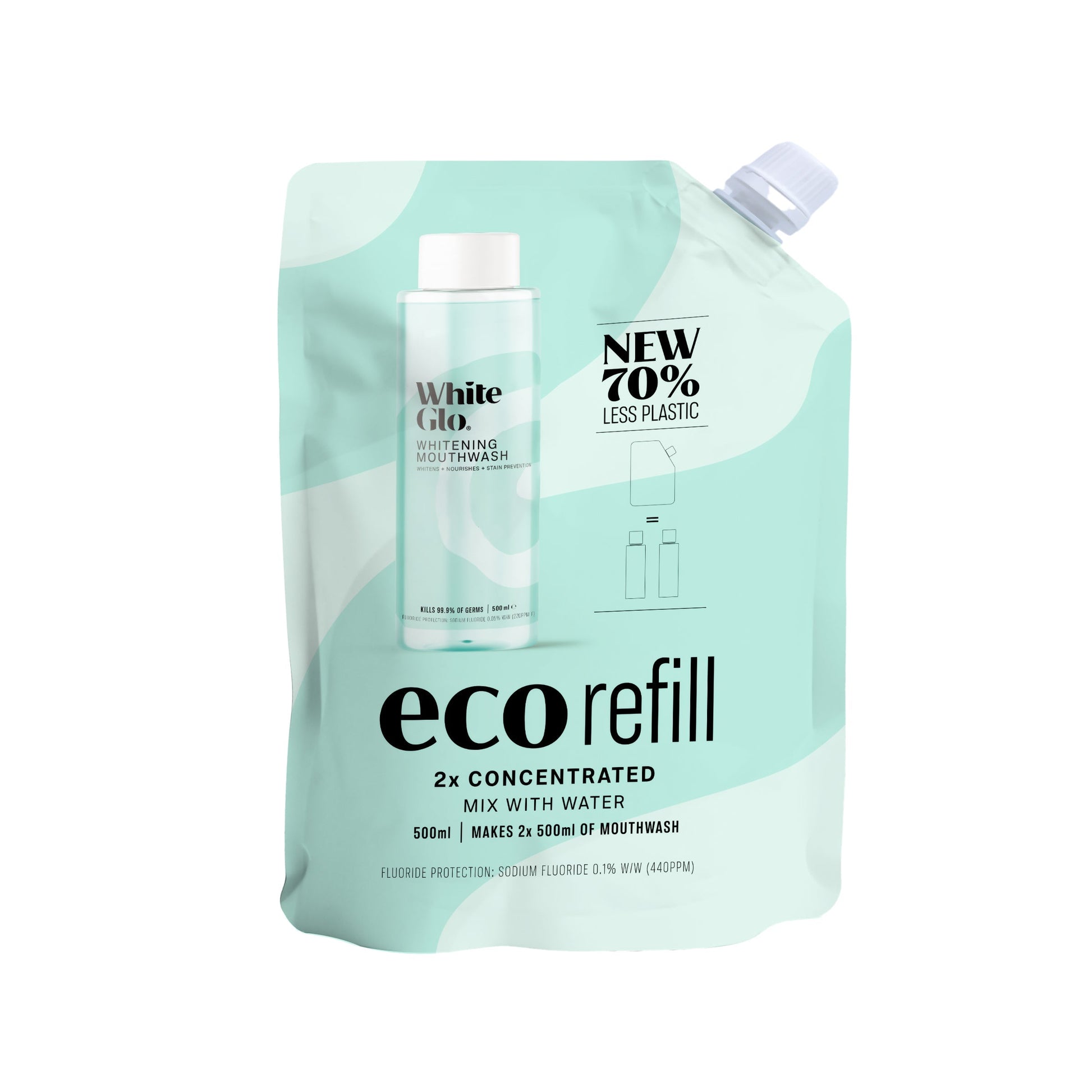 White Glo’s Whitening Mouthwash Eco Refill is a double concentrated solution designed to bring oral health and environmental sustainability. The mouthwash contains an advanced formulation to remove 99.9% of bacteria, whilst nourishing gums, whitening teeth, and preventing stains from forming on enamel. It contains Evercool technology to provide long lasting freshness that last for hours.